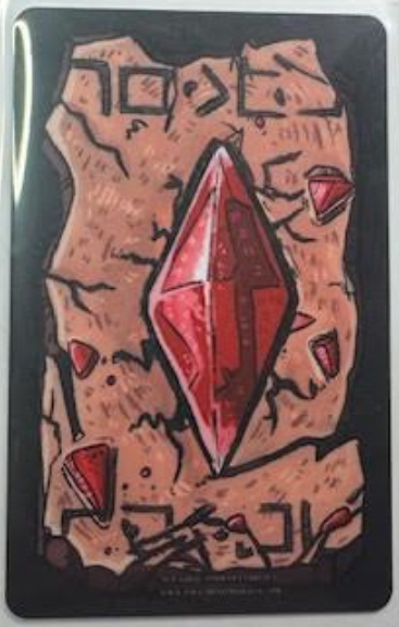 Over the course of 3.0, Texas released three major currency variations, the Amaranthite, the Shard of the Red Crown, and War Supplies. The Amaranthite was worth approximately 10 currency, while the Shard of the Red Crown was worth 20, and War Supplies had a variable cost depending on how you acquired them. The two crystal currencies were used for the Prince Undying arc, while the War Supplies was one of many “illustrated item cards” of 3.0, released in the greatest quantity during the year-long story of the War of Antlers. War Supplies and Amaranthite are printed on rounded edged thin cardstock, while the Shards are on the thick plastic like other currencies from 2.0.